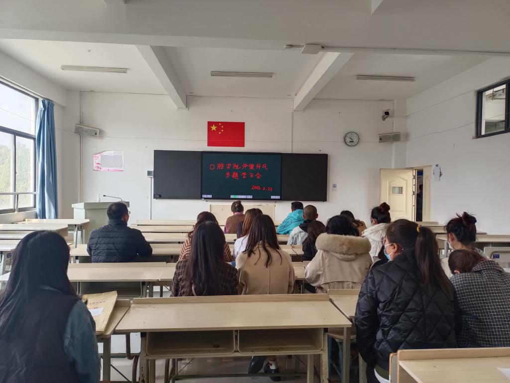 其次,在袁老师的组织下全体教师一同学习《红河卫生职业学院师德师风制度汇编》,袁庆老师强调全体教师应谨记教师使命,恪守教师职业道德,规范职业行为,明确师德底线。坚持做到正人先正己,身教重于言教,树立良好师德形象,不忘初心,牢记使命。