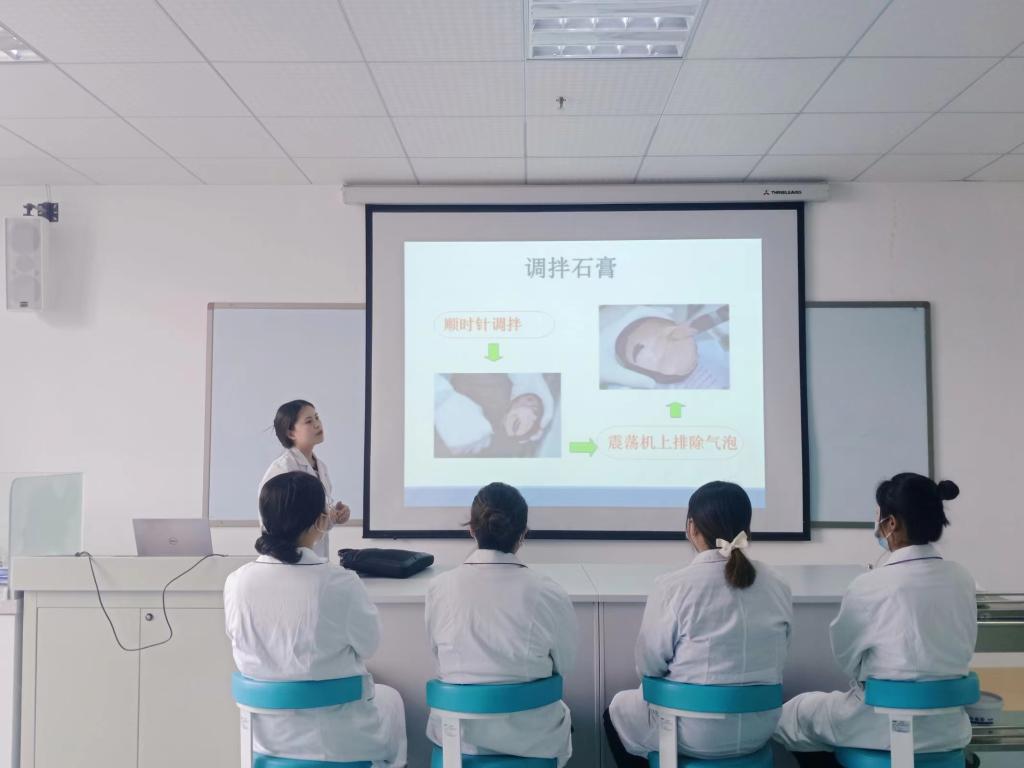 为进一步规范口腔护理专业实训课程教学,提高课堂教学效果,全面提高教师业务素质和教学水平。2023年3月22日下午,口腔护理专业教研室在综合实训中心402开展石膏模型灌注技术教研活动。