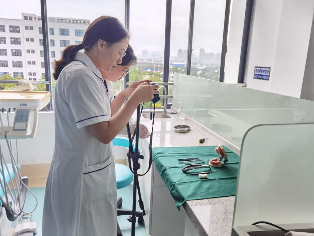 最后王露敏老师严格按照标准流程进行下颌中切牙拔除操作演示,其余专业教师配合录制,并针对录制过程中存在的问题及时提出指导建议,全体教师齐心协力确保录制的教学视频标准、规范。