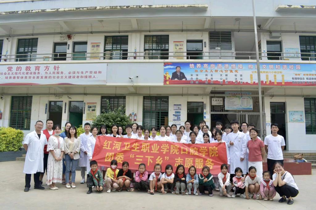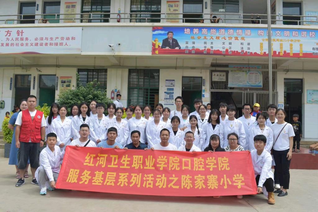 2022年6月22日下午“红卫口腔实践队”师生在口腔学院院长陈平与口腔学院团委副书记刘绍康的带领下,一同前往陈家寨小学开展“红河卫生职业学院口腔学院服务基层系列活动之陈家寨小学”社会实践活动。参与本次活动的还有红河卫生职业学院红十字会成员张巧玲、杨梅、安倩慧、普海丽。
