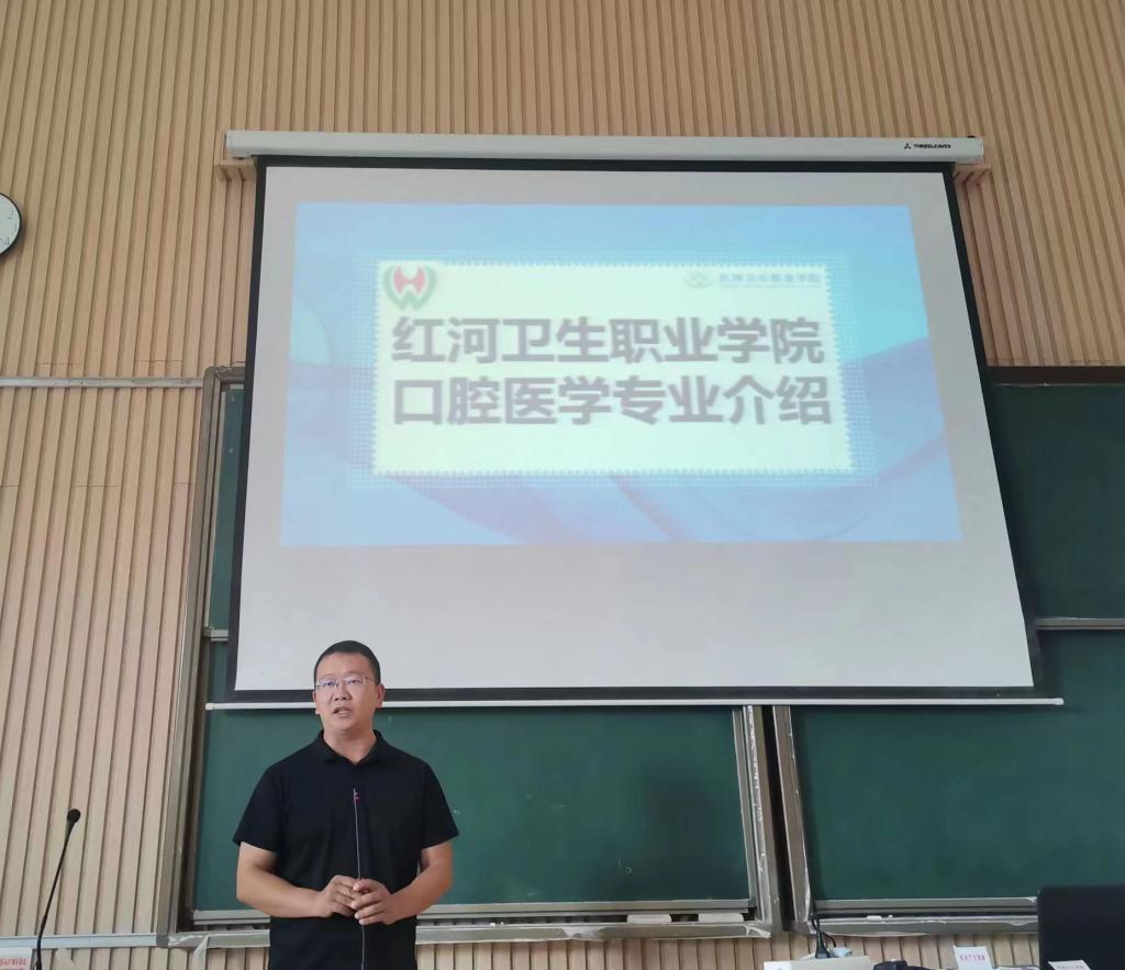 首先,陈平老师致辞,欢迎大家选择到红河卫生职业学院口腔医学技术专业,同时对口腔医学技术专业前景进行了介绍和分析,希望同学们通过学校这个平台好好学习,这是一个新生活的开始,做一个新的自己。