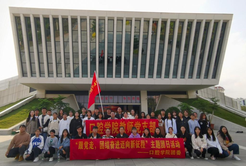 为不断增强口腔学院在校大学生民族团结意识,深入了解红河州历史沿革,增强学生爱国主义情怀,口腔学院教师党支部带领团委学生会于2022年11月5日上午开展主题为“跟党走,团结奋进迈向新征程”的主题团日活动,活动主要内容是参观红河州展览馆,了解红河州经典历史及多民族文化,展望红河州美好未来。参加本次活动的有我校党委委员、副校长李锋、口腔学院教师党支部部分党员教师及口腔学院团委学生会四十多名学生。