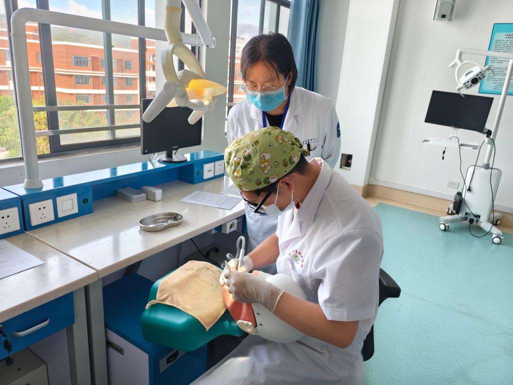 2025年5月30日,我校口腔医学专业2023级125名学生顺利完成实践技能第三方考核。本次考核由红河州第一人民医院口腔科吴雨耘、杨贞娴两名资深医师担任评委,通过“磨牙邻合面洞预备”“磨牙开髓术”两大核心项目,全面检验学生临床操作规范性与综合诊疗思维,为优化人才培养方案提供行业视角的精准反馈。