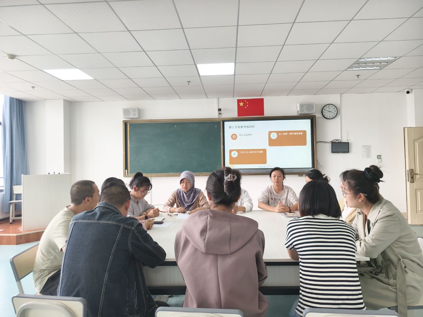 考核结束后,校院双方立即启动“考-评-改”闭环机制。在下午召开的反馈会上,专家建议“将真实义齿修复病例引入实训”“强化数字化设计软件应用能力”,直指行业对复合型技术人才的核心需求。现场,口腔医学技术专业教师们围绕“如何将考核痛点转化为教学重点”展开热烈讨论:“蜡型滴塑的加热温度控制可以增加分组实验”“牙体绘图可引入数字化软件辅助教学”一场考核,最终转化为教学提质的“动力源”。