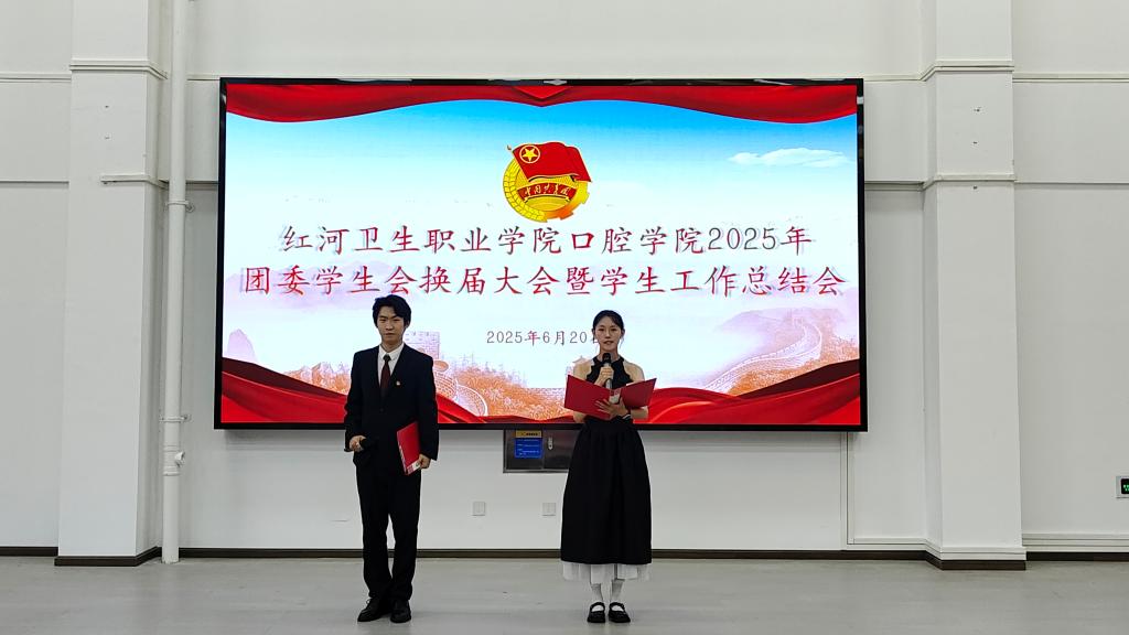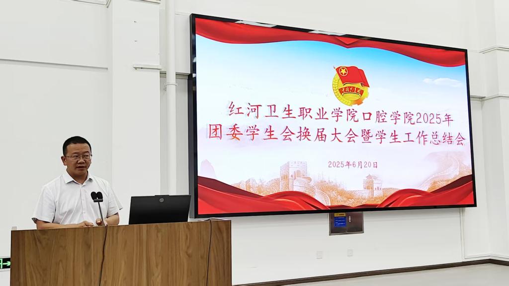 2025年6月18日16时30分,红河卫生职业学院口腔学院团委学生会换届暨学生工作总结会在至知楼西3-2教室举行。口腔学院全体教师及新老学生会成员齐聚一堂,共同见证这一承载责任与荣耀的时刻。