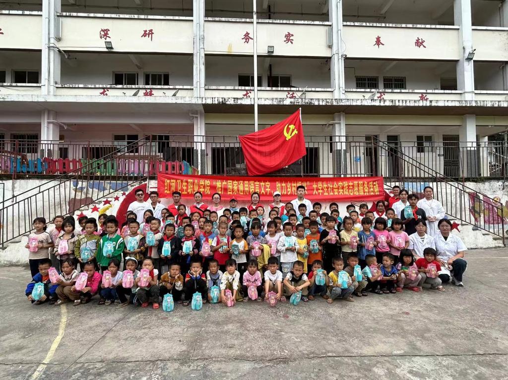 2023年6月21日,口腔学院教师党支部和口腔学院团委共同组织了一批优秀的师生代表,赴屏边县湾塘乡大冲小学开展红河卫生职业学院“推广国家通用语言文字,助力乡村振兴”大学生社会实践志愿服务活动。同时,这也是口腔学院教师党支部党建带团建、党建带专建关注儿童口腔健康大学生“三下乡”的社会实践活动。