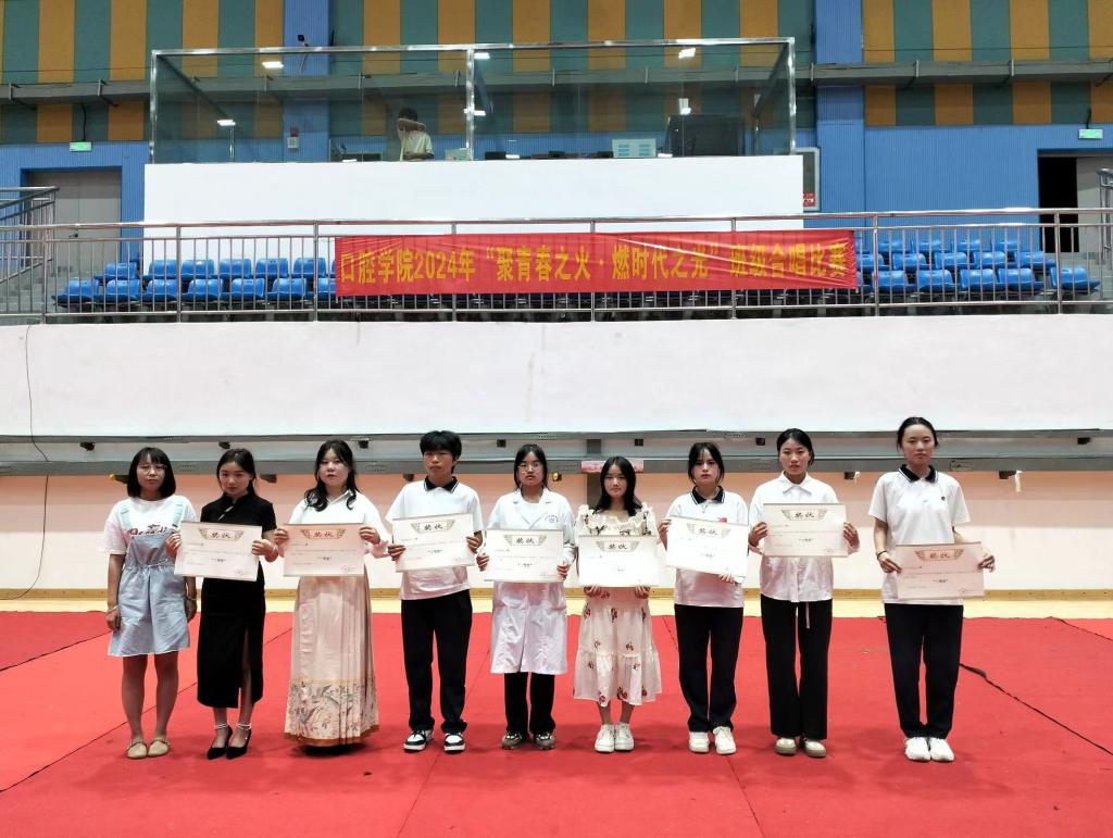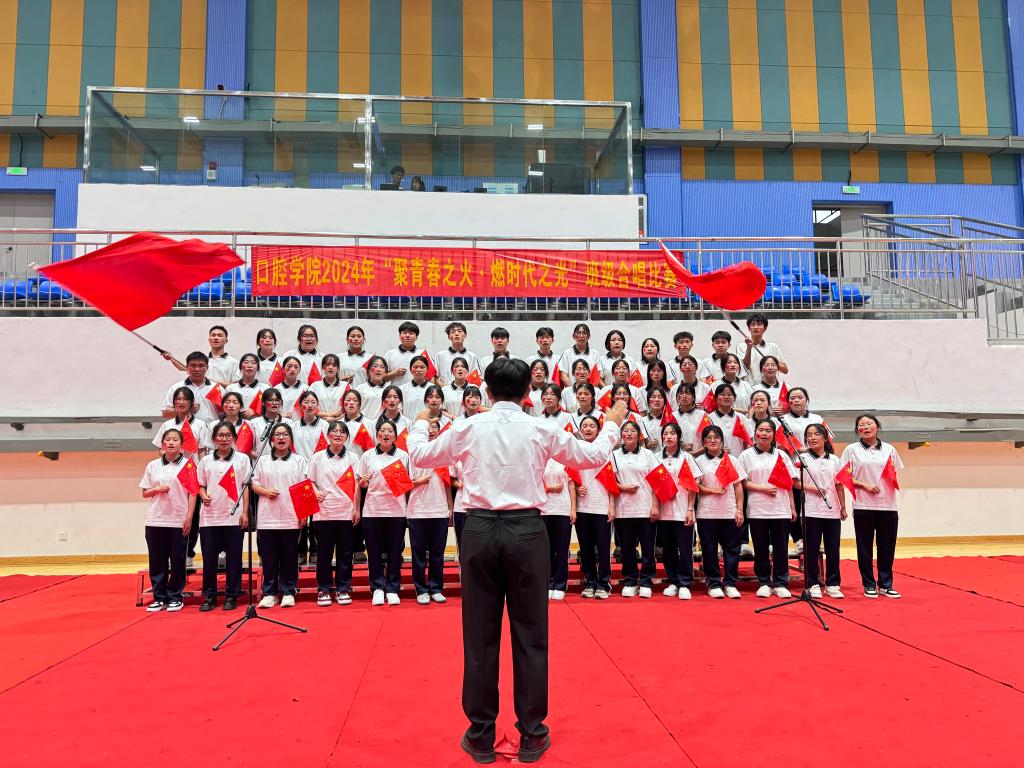 为进一步深入贯彻党的二十大精神,团结引领广大青少年坚定跟党走、建功新时代,引导广大青少年厚植爱党、爱国、爱社会主义的情感,让红色基因、革命薪火代代传承。红河卫生职业学院口腔学院于2024年4月27日晚在体育馆开展以“聚青春之火,燃时代之光”为主题的班级合唱比赛。在校班级歌咏班级之歌,如春风拂面,如夏雨润心。