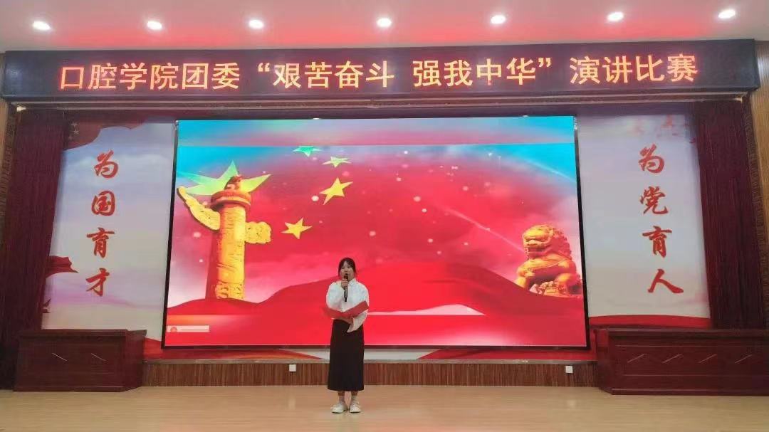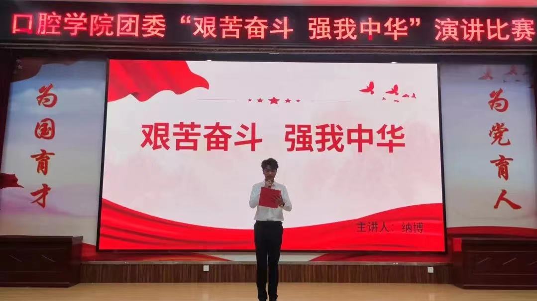 百年大党风华正茂恰青春,征程万里奋楫扬鞭正当时。为深入贯彻落实党的二十大精神,践行社会主义核心价值观,口腔学院校团委于2023年9月18日在图书馆报告厅开展“艰苦奋斗,强我中华”青年主题演讲比赛,旨在将二十大精神融入学生生活,养其苦身,宣扬强我中华之精神。