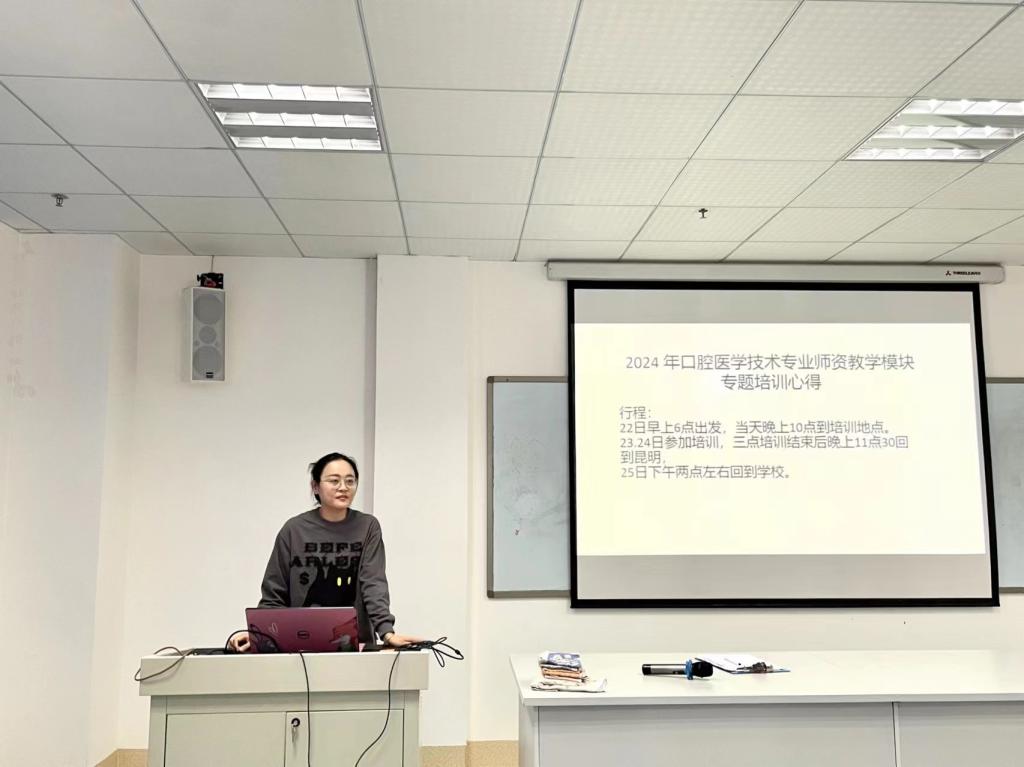 2024年3月27日下午在综合实训中心401,由武婕、黄蓉两位老师就“2024 年口腔医学技术专业师资教学模块专题培训”活动进行学习分享。活动由口腔学院副院长纳锦主持,口腔学院全体专业教师参加。