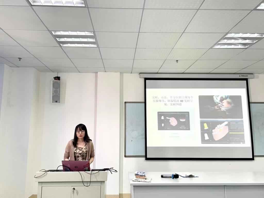 随后,由口腔医学技术教研室主任黄蓉作培训体验分享,她强调,此次培训的目的是让口腔类高职院校教师更加了解行业发展、岗位要求和标准,进而帮助学生提升岗位适应能力。此次培训分享,我院教师对“数字化虚拟仿真实训在牙体预备教学中的应用”及“口内扫描和固定冠、桥CAD实操”有了更全面、更深入的认识。接下来,学院将进一步加强师资培训工作,不断提升教师的教学能力和专业素养。