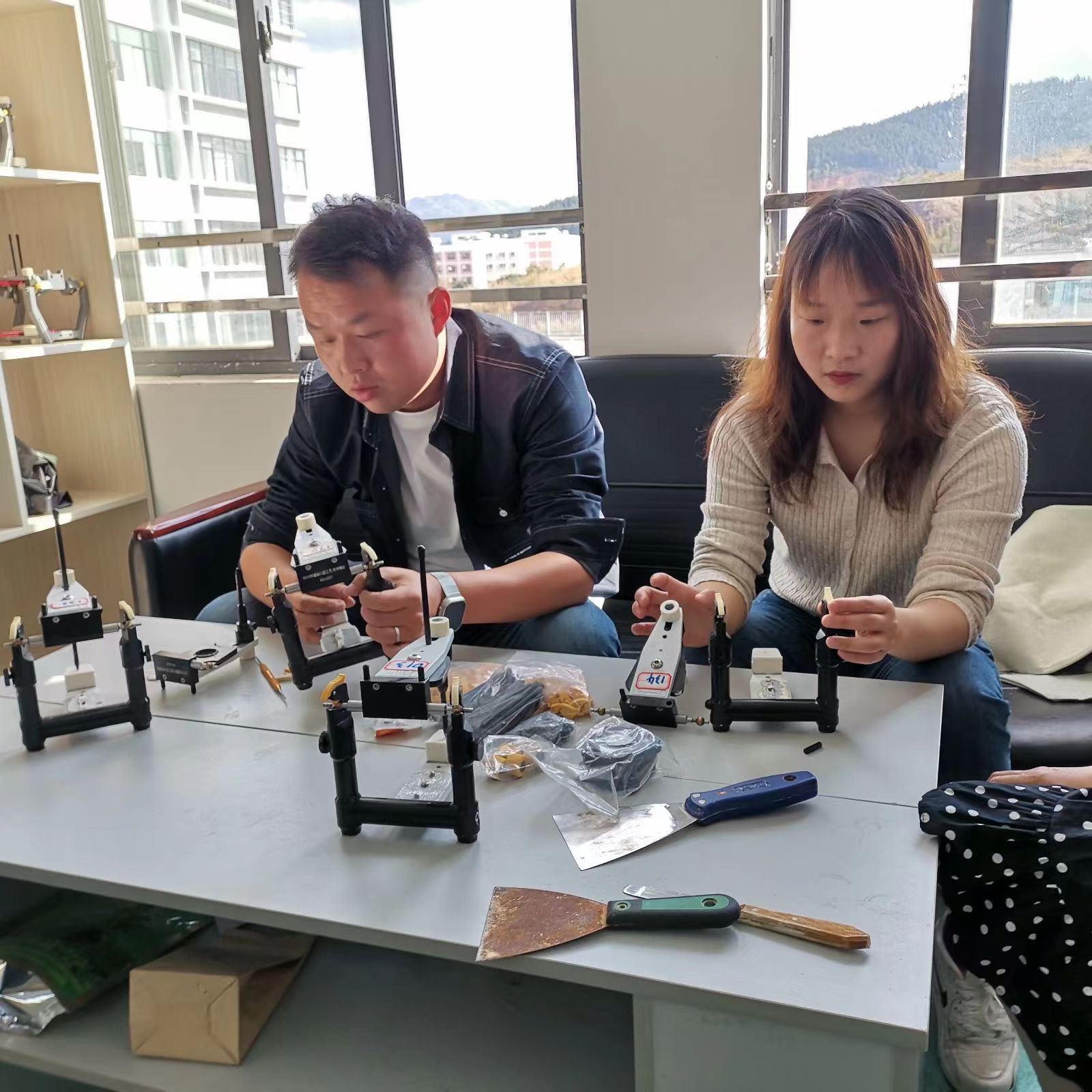 李哲老师在活动中从(牙合)架的工作原理、结构组成、使用过程中易出现的问题与修理方法展开全面讲解,并向任课教师们进行修理演示。在李哲老师的指导下,老师们纷纷加入到(牙合)架的修理队伍中,通过动手操作不断提升学科实践能力。