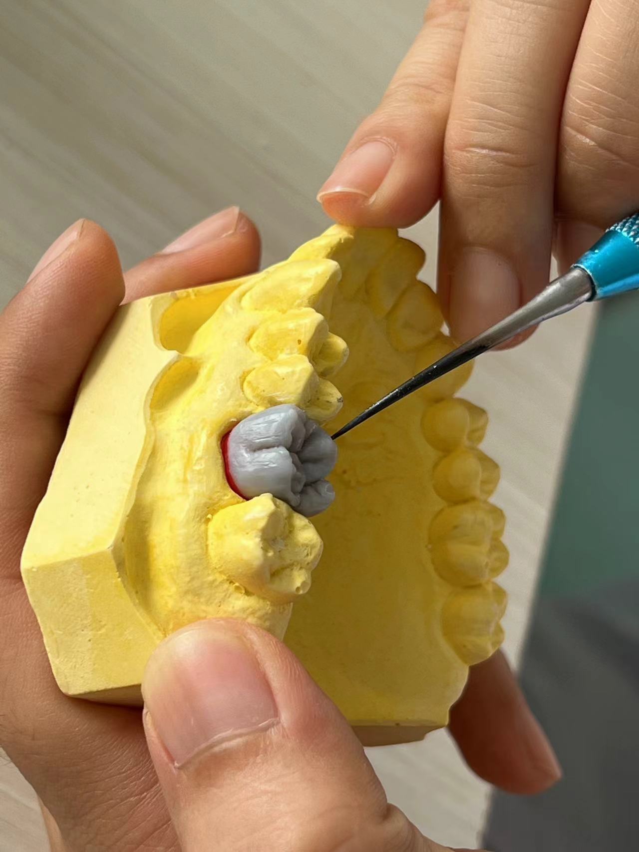 活动中,首先由邓雅文老师详细讲解了右上第一磨牙单冠蜡型滴塑的流程和要点,包括定点、连线、围面、轴面制作、轴面精修、牙合面滴塑、牙合面精修等步骤,并强调了制作过程中的难点。随后,邓老师现场示教了牙体滴塑技术的实际操作,并详细解说了每一步骤的关键点。