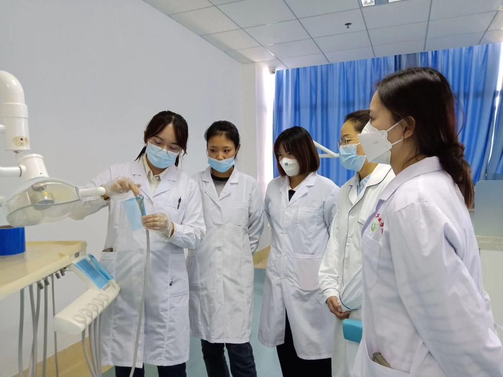最后,李莎老师以窝沟封闭的四手操作配合为例,现场示教规范的四手操作医护配合流程,如口腔器械的传递及交换方法,吸引器的使用等。随后,教研室全体教师进行练习,四手操作技能有了进一步提高。