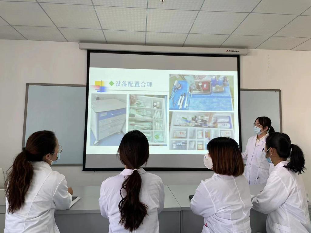 其次,李莎老师为老师们分享培训中操作台设备放置的方法与要求,强调老师们在授课过程中要规范用物准备及用物的合理分类放置,要求物品放置要便于配台时的操作。