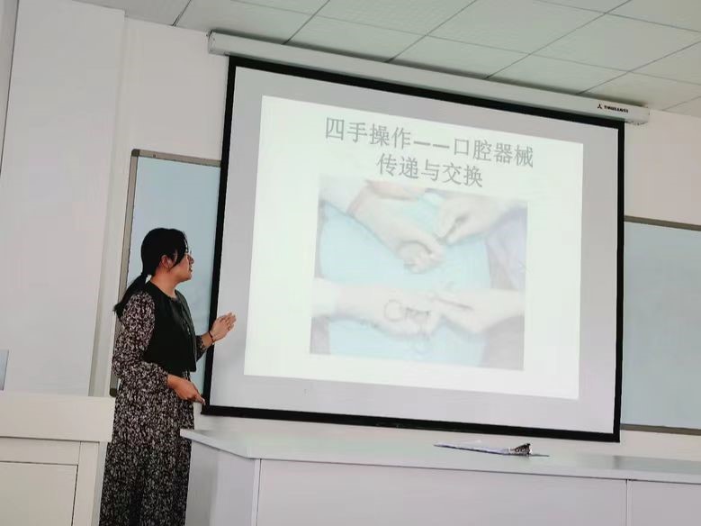 为进一步提高口腔护理专业教师教学水平和能力,2023年10月18日下午,口腔护理教研室全体教师在综合实训中心401开展专业课评课活动,评课活动由陈平老师和吴雪莲老师担任评委。