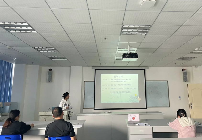 活动开始,口腔护理专业各课程负责人轮流进行十分钟的理论课教学展示,他们首先介绍本次课堂的教学设计思路和教学目标,随后进入专业知识讲授,评委老师对各位老师的讲课情况进行点评,提出意见和建议。陈平老师结合口腔护理专业的人才培养方案,从课堂的教学目标、教学内容、教学重难点、教学设计等方面指出了各位老师存在的不足,他强调教师要加强课堂的管理和把控,要充分调动学生的积极性,特别是在课堂教学中也要注重学生德育的培养;同时陈平老师也对授课老师作了肯定,他提到老师们讲课整体教态自然,语速适中,上课思路清晰,对知识点的把握比较到位,明显感受到各位老师相较于之前的教学能力都有了很大提高和进步。