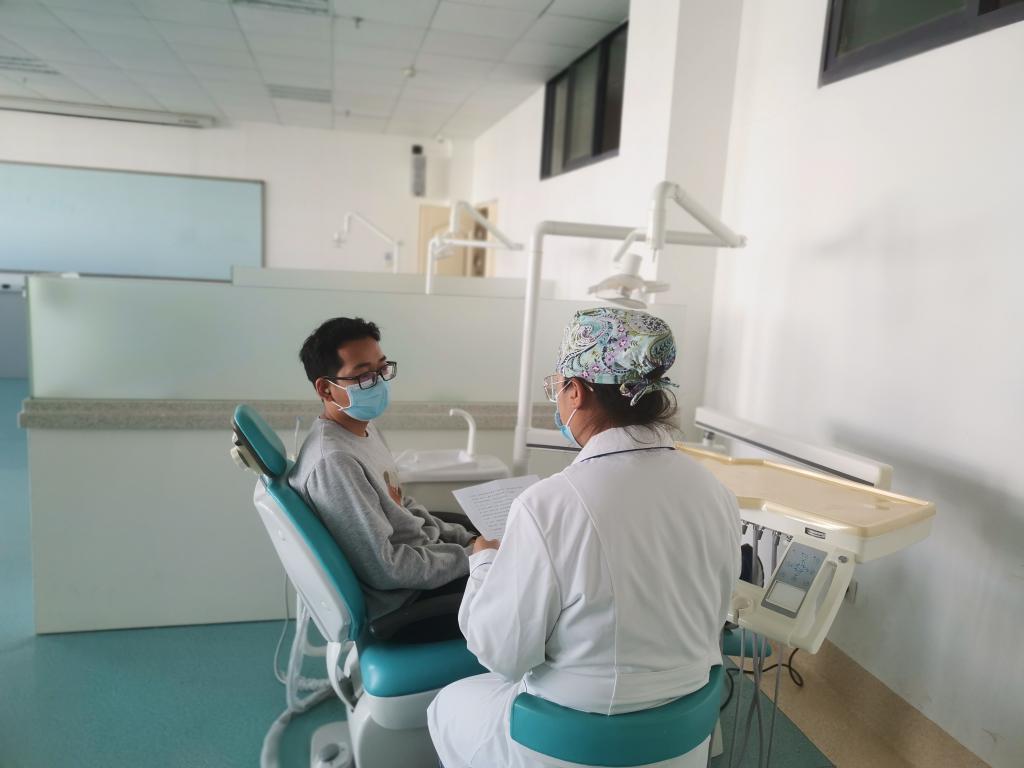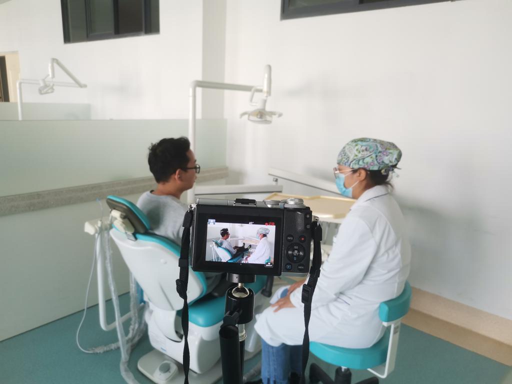 本次视频录制内容为:通过角色扮演来模拟口腔临床诊疗过程。在拍摄时,根据真实的诊疗环境,由徐锦佳老师扮演医生分别对刘苛锐老师及武婕老师扮演的患者进行诊疗。通过病史采集和体格检查做出正确的诊断和处理,并对“模拟患者”提出的问题进行沟通,答疑解惑。拍摄过程中,大家齐心协力,针对存在的问题进行不断调整,集思广益,优化“剧本”,力求拍摄出高质量的教学视频。