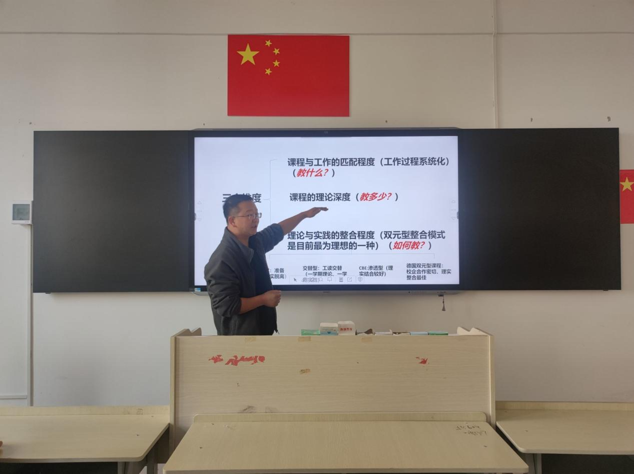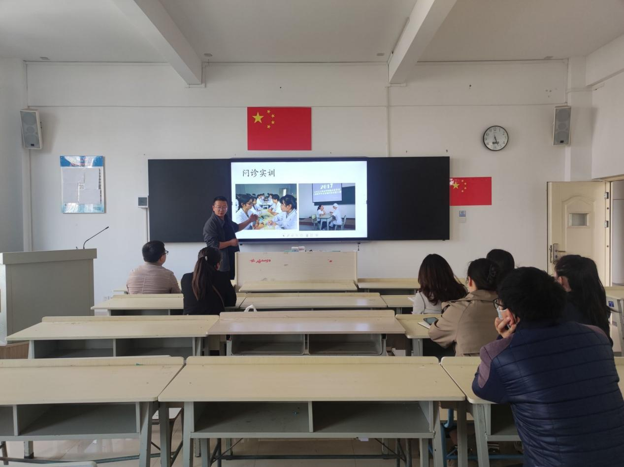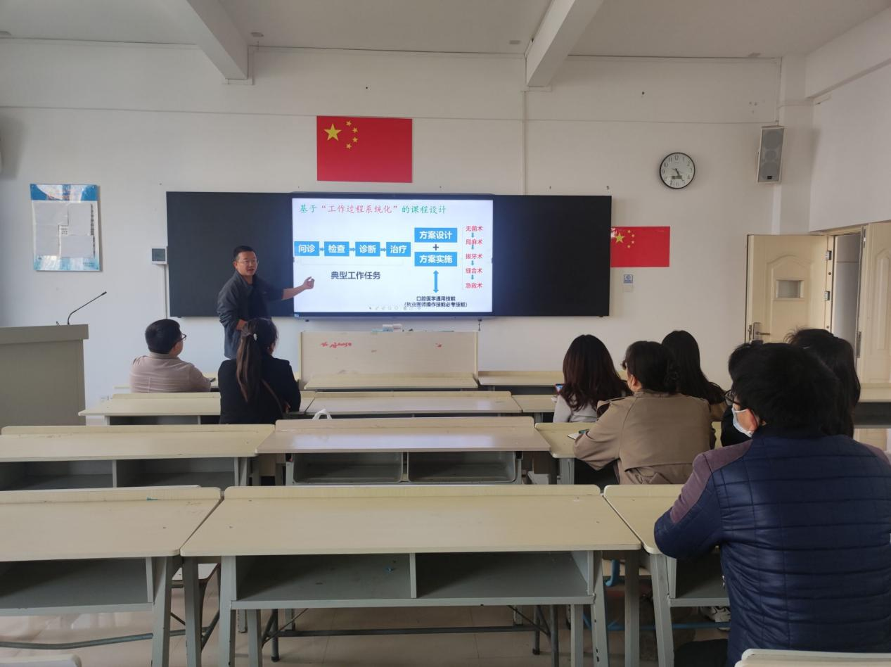 其次他从专业创新定位“谋出路”、课程体系改革“促内涵”、全产业链办学“创品牌”、五纵五横诊改“保质量”四个方面对如何把口腔医学专业建设成为品牌专业进行了论述。同时对如何进行“工作过程系统化”的课程设计进行了重点介绍,他以《牙槽外科学》为例,全面阐述了行动体系下的课程结构如何实现解构后的重构,并强调人才培养规格中医学生临床思维能力培养不足以及医患沟通能力较差的短板根源。要求大家要以此次教研活动为契机,全面深化口腔医学专业教学改革,尤其是课程改革,真正把改革落地课堂,实现口腔医学专业教学质量的新突破。