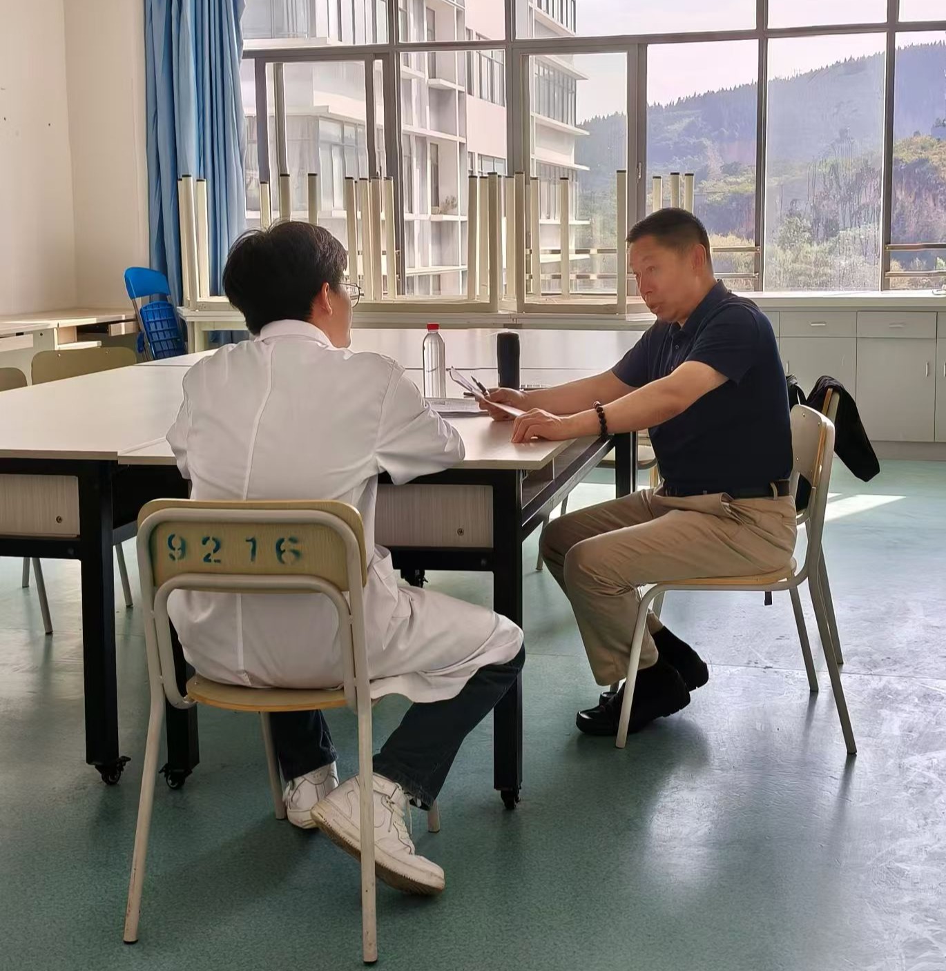 24日下午,新致美集团常务副总兼管人事的王良在综合实训中心507室逐一对42名面试者进行一对一面试,面试环节更是紧张而有序。学生们身着白大褂,精神饱满地展示了自己的专业知识和综合素质。面试官泽则耐心倾听,细心提问,从多个角度对学生进行评估。他们不仅关注学生的学术成绩,更注重学生的沟通能力、团队合作精神和创新思维。