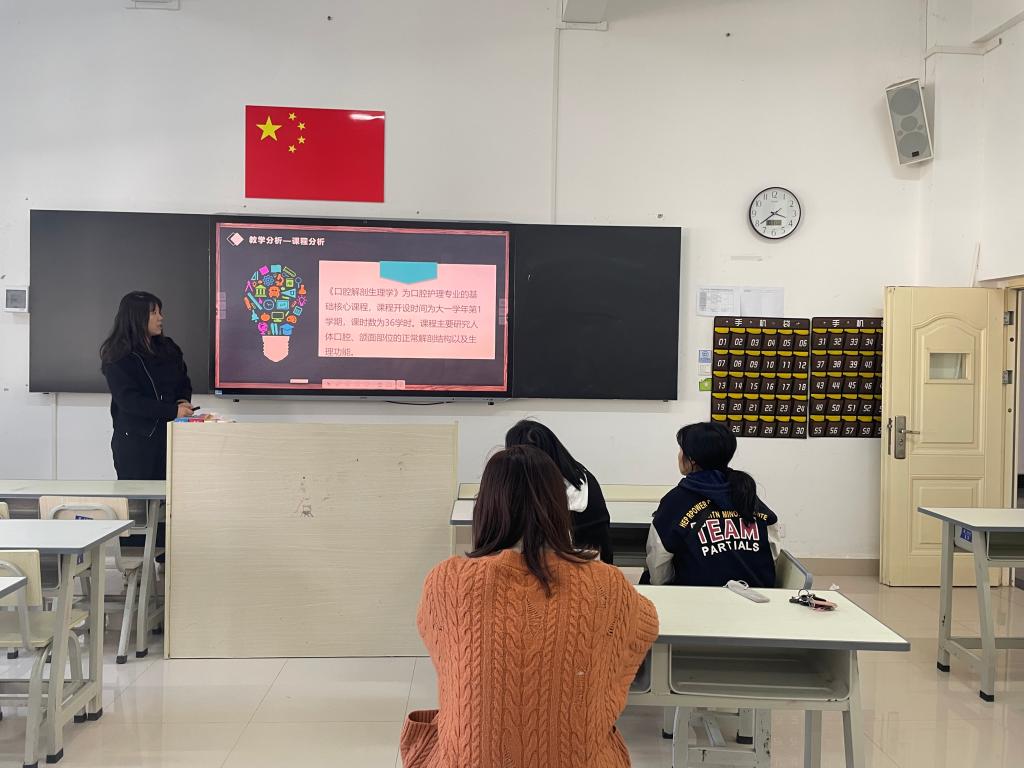 “说课”是教师钻研教材、探讨教法、不断提高教学水平的一项基本技能,更是促进教师专业化发展的有效途径。为夯实口腔护理教师教学基本功,提升教学质量。2024年12月11日下午,口腔护理教研室在教学楼南108开展专业课程教学说课活动,本次说课教师为程芳、程丽何、罗梦娜,教研室全体教师参加。