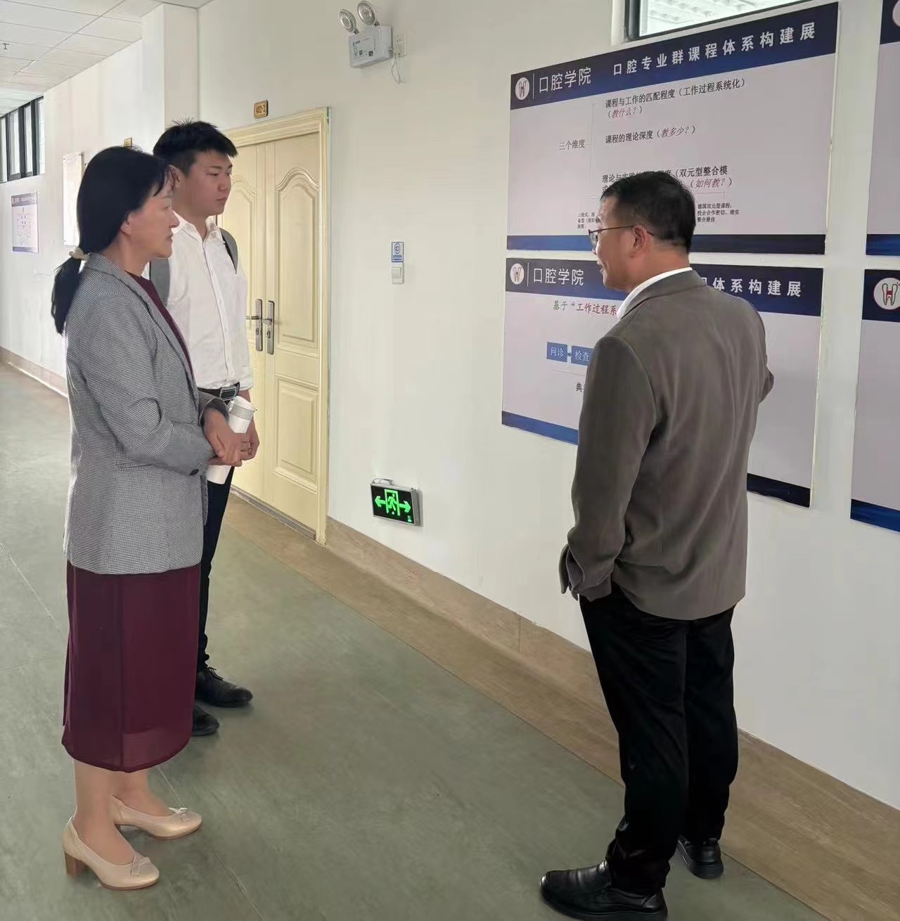 座谈会后,孟敏教授在陈院长的带领下共同参观了口腔学院实训室,进一步了解专业特色和教学模式,并对实训室后续的发展建设提出了建议。