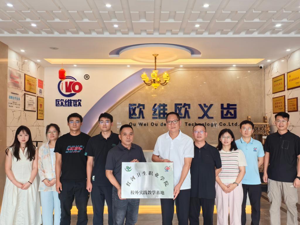 为深入贯彻落实党中央、国务院关于高校毕业生就业工作的决策部署,持续推进口腔学院学生实习实训和就业工作,并推进产教融合深化改革,探索校企合作协同育人新模式,7月12日,红河卫生职业学院党委委员、副校长李锋,口腔学院院长陈平,副院长纳锦一行走访了云南欧维欧义齿科技有限公司,并进行了座谈和校外示范实训基地的授牌仪式。