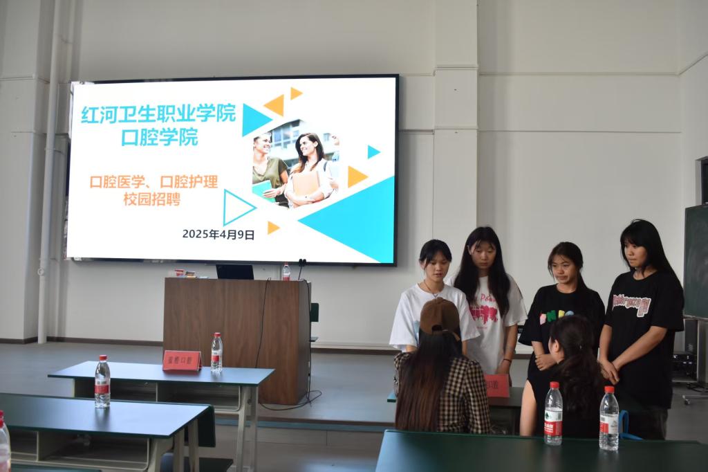 随后,宣讲活动转场至西3-2教室正式拉开帷幕。活动中,各单位从多维度展现了行业发展趋势与人才需求,多家机构重点介绍数字化口腔诊疗技术的临床应用,强调学生需掌握数字化设备操作及数据分析能力,以适应行业技术革新需求。同时,企业代表们结合实习培训与发展规划、带教计划等内容进行了详细讲解,为学生们提供了宝贵的职业指引与启示。