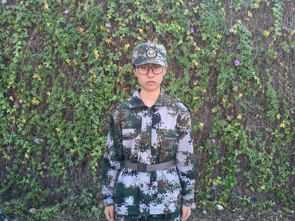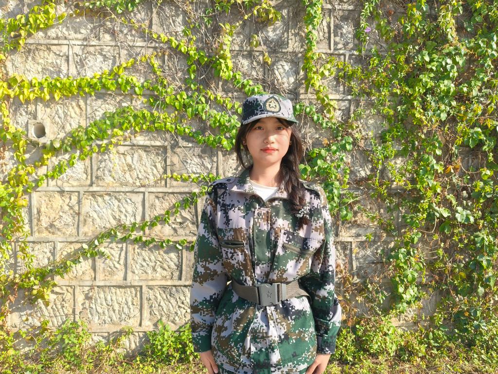 51连23口腔2班吴佳:“我觉得踢正步最具挑战,要和大家的步伐、抬腿高度完全一致很难。我就仔细观察教官的示范,休息时自己练习腿部动作找感觉,训练时全神贯注听口号,努力跟上大家节奏,后来就越来越整齐了。”