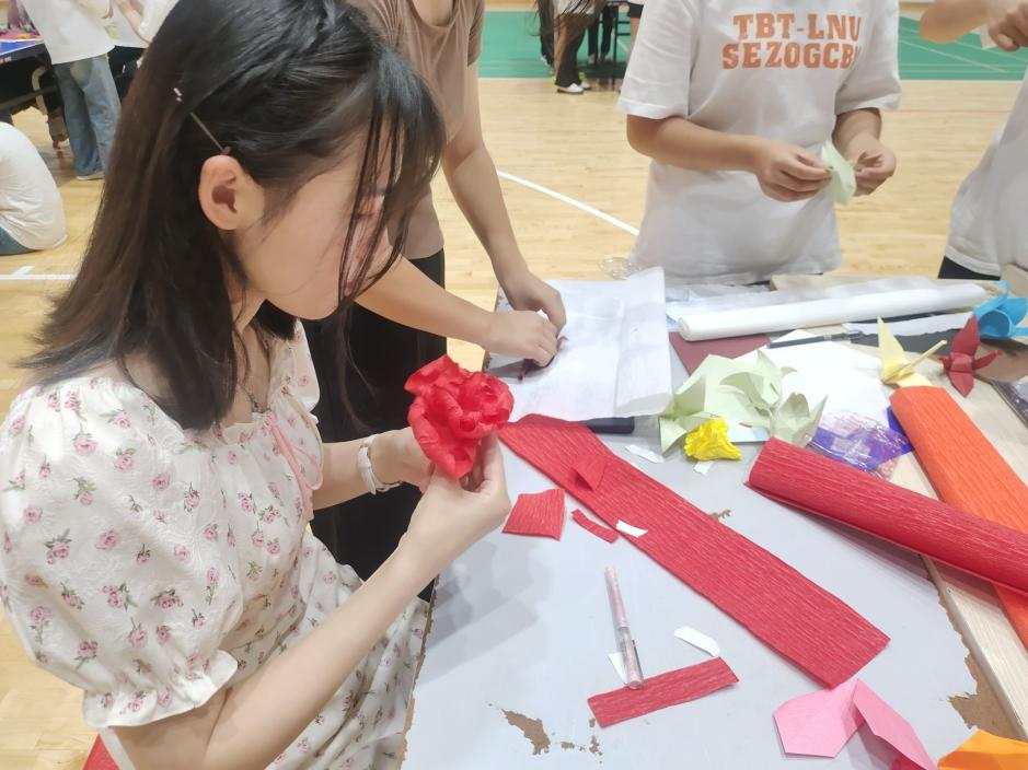 活动开始,同学们在工作人员的带领下有序就位,活动过程中,同学们非常认真享受折纸过程,工作人员会耐心指导,各小组相互交流。折纸过程不仅让同学们体会到了折纸艺术的乐趣,还拉进了同学们的距离,在左右手的协调合作、手指的灵活运用以及各位同学的积极配合,一张张纸被展开、翻转、对折、按压,最后一个个栩栩如生的折纸作品就诞生了。