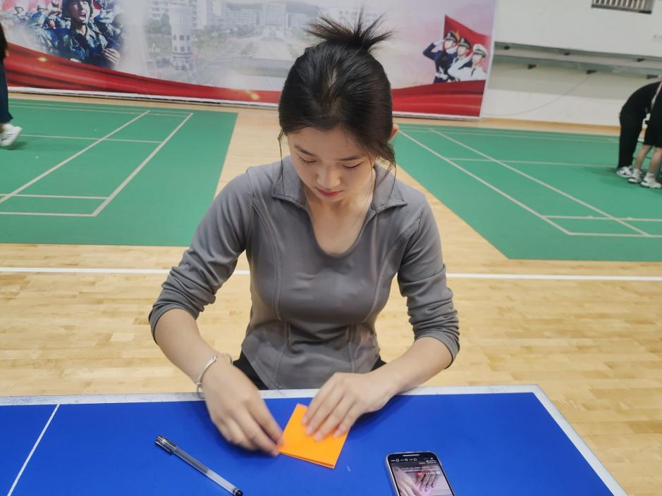 纸艺是以纸为材料,以“心”造象,以“意”变形,以“纸”传情,通过不同的方式把美好的事物表现出来的一种工艺。折纸不仅是一种创造性的活动,它也对人们的教育和个人发展有着重要影响,也可以帮助同学们更好地了解和探索自己的潜能。为积极响应心理宣传月活动号召,展现广大学生的青春活力,丰富学生的校园生活,口腔学院于2023年5月31日晚上19:30在体育馆举行“回归童真.以纸传情”为主题的折纸活动。