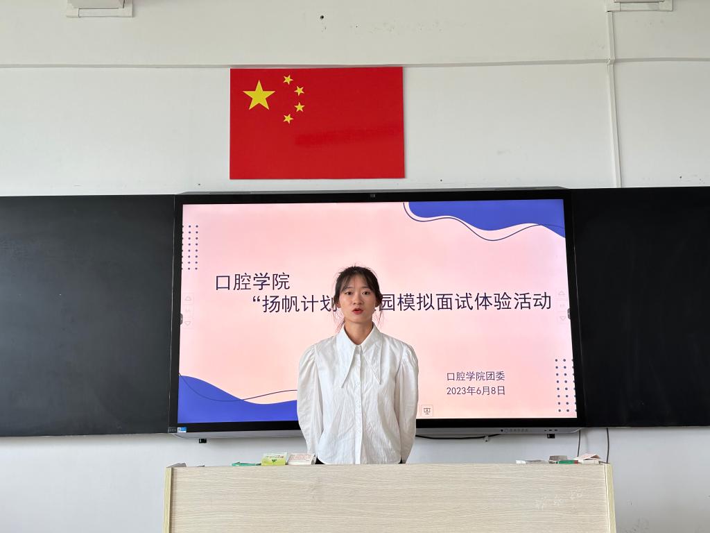 为营造浓厚的就业氛围,帮助同学们在实战中锻炼,从而积累求职面试的经验,口腔学院于2023年6月8日至6月14日在教学楼举行口腔学院“扬帆计划”校园模拟面试体验活动。参加此次活动的有口腔学院团委书记陈诚、团委副书记高巧、辅导员李参斗和2021级全体在校学生。
