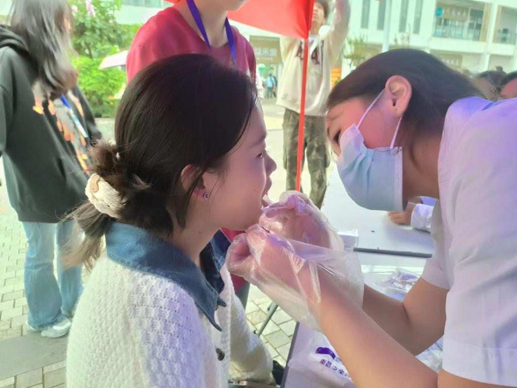 在快节奏的现代生活中,我们常常忙于工作与学习,却容易忽视一个关乎全身健康的重要角落--我们的口腔,口腔作为人体健康的第一道门户,其健康状况直接影响着我们的生活质量乃至整体健康。俗话说:“病从口入”,而口腔健康则是抵御疾病的第一道防线。为了提升大家对口腔健康的重视程度,为此口腔学院于2024年10月9日下午三点在商业街开展了“身体健康,从齿开始”为主题的口腔义诊活动。