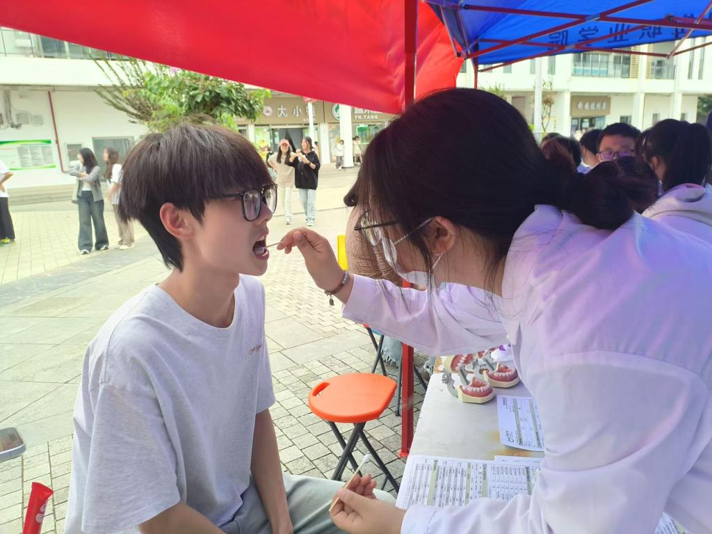 秋风送爽,丹桂飘香。更好地宣传口腔卫生保健知识,增强口腔健康观念,营造有利于口腔健康的良好的校园文化交流氛围,给更多的同学带来爱护口腔相关的知识,口腔学院于2024年10月23日下午在商业街开展口腔义诊活动。