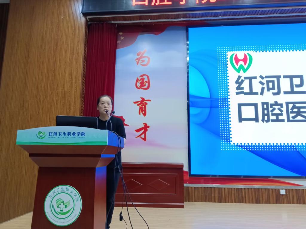 紧接着,口腔医学专业负责人徐锦佳老师为全体新生介绍了我校口腔医学专业发展历程、建设情况和专业成绩,从专业概况、人才培养、师资队伍、临床教学基地、职业规划等几个方面细致讲解,同时强调了口腔医学专业学籍管理规章制度,并鼓励同学们在新时代脚踏实地,奋发图强,努力探索,开拓美好的未来!