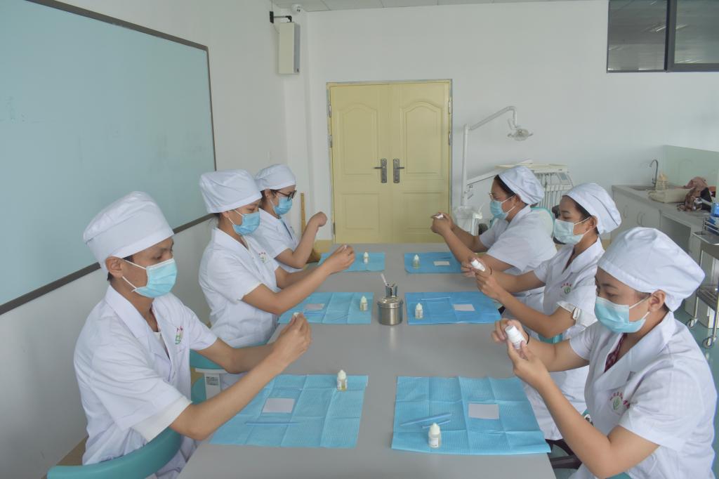 校内实训:学院拥有完善的口腔实训条件,包括口腔基础实训中心及标本模型陈列室、口腔临床技能实训中心、口腔颌面放射实训室、口腔模拟诊室等,能够满足口腔护理实训教学。另外,学院紧紧依托红河州妇幼保健院口腔科、红河州第一人民医院(附属医院)口腔科以及蒙自市人民医院口腔科作为我校的口腔护理临床见习和实习的就近基地,能够满足学生的临床见习、实习需求。