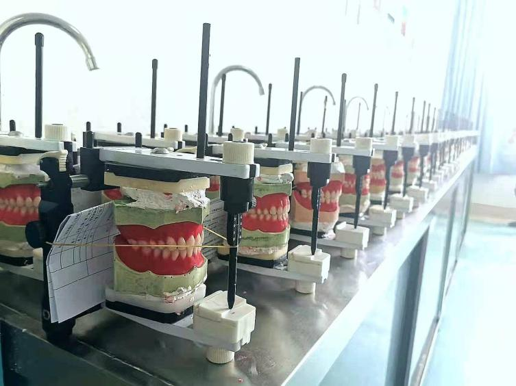 我校学生人数与技工桌位比小于2:1。综合实训室6间,操作间1间,CAD机房2间。拥有设备:Basic 平均值颌架200台、Basic 电磁感应熔蜡器200台,石膏震荡机1台、抛光机1台、烤瓷炉1台、蒸汽机1台、石膏震荡机1台、蒸汽清洗机1台、超声波清洗机1台、琼脂溶解机1台、聚合机1台、打磨机2台。
