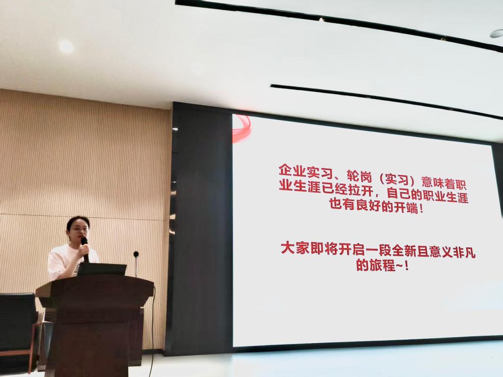 专业负责人黄蓉老师围绕实习的核心任务和专业技能提升目标进行了详细讲解。她深入解读了实习期间的具体要求、工作内容及考核标准,帮助同学们清晰规划实习期间的学习路径。黄老师特别强调,进入企业实习是宝贵的学习机遇,鼓励同学们要积极主动:主动向企业师傅请教学习,深入参与实际生产项目,在真实工作环境中不断拓展专业视野,提升解决实际技术问题的能力,为未来职业发展打下坚实基础。辅导员李叁斗老师从学生管理和关怀角度出发,重点强调了实习期间的纪律要求与安全注意事项。他结合实例,细致叮嘱同学们务必严格遵守实习单位规章制度和生产操作规程,时刻将人身安全、财产安全、操作安全放在首位。李老师还特别提醒同学们要尽快适应新环境,保持积极心态和良好沟通方式,遇到任何困难或疑问,务必及时向校内指班主任、辅导员、专业老师或企业师傅反馈,确保实习过程安全、顺利。