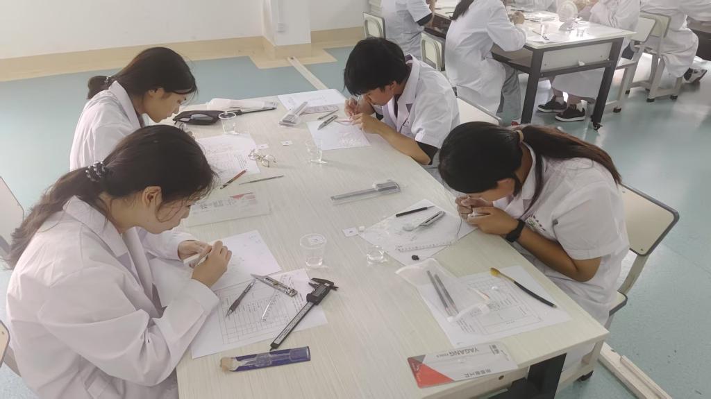 大赛严格对接行业标准,通过还原标准牙体形态与功能实操任务,检验学生对手工雕刻、蜡型制作、义齿排列等关键技术的掌握程度。其中,牙体雕刻项目重点考核解剖形态的精准把握;蜡型制作项目着重评估功能咬合关系的准确呈现;全口排牙项目则全面测试学生对牙齿排列与功能重建的综合把控能力。参赛选手在限时操作中展现出扎实的理论基础与娴熟的动手能力,充分彰显了我院口腔医学技术人才培养的丰硕成果。