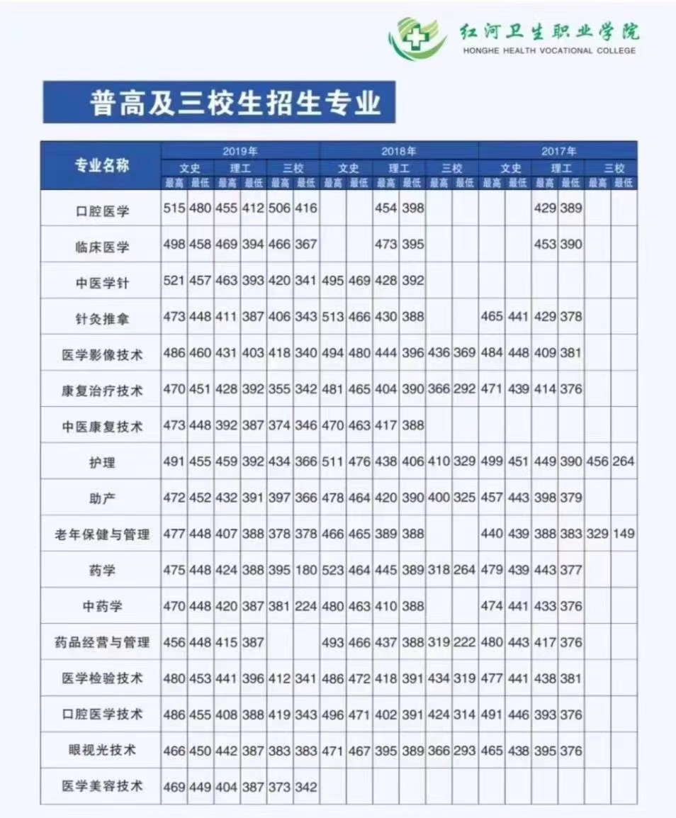 各专业2020年普高省分数线