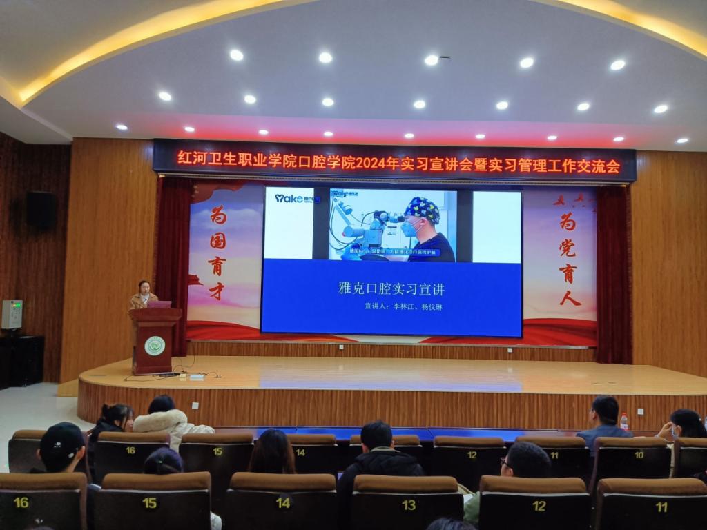 为拓宽口腔学院2022级学生实习渠道,搭建实习生和用人单位之间的交流平台,加强校企联系,全面推进口腔学院实习工作,口腔学院于2023年12月20日分别在图书馆报告厅与实验实训楼阶梯教室开展口腔医学专业、口腔护理专业、口腔医学技术专业实习宣讲会,本次活动邀请到省内外30家企业代表做了现场宣讲。