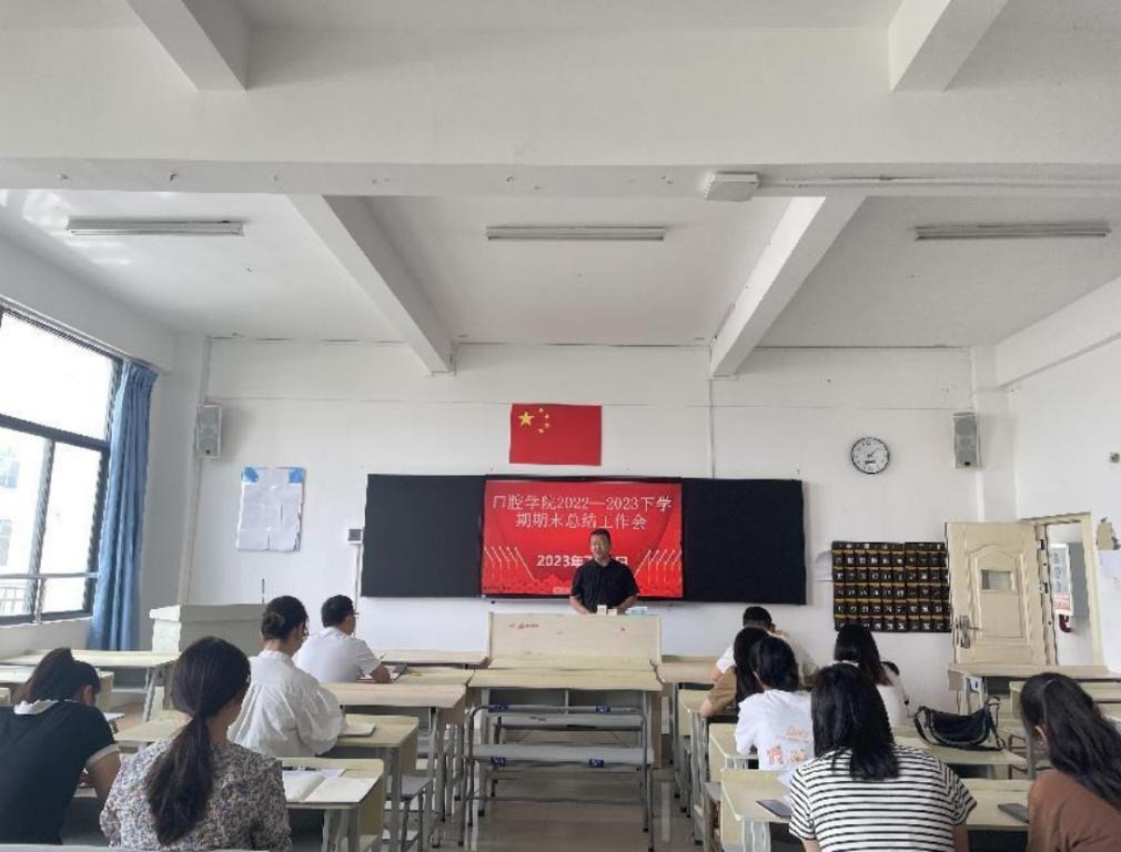 就业推进会结束后,口腔学院举行了期末工作总结会议。会议由陈平院长主持,他首先总结了口腔学院2023年上半年的工作情况。陈平院长说,口腔学院上半年各项工作完成良好,尤其在教研室建设、专业建设以及学生管理工作方面呈现出很多亮点,取得很多新的突破,他要求大家再接再厉,再创佳绩。同时他也指出目前口腔学院存在的不足。一是专业负责人主动谋划专业发展的动力不够,能力不足,需要提升。二是口腔学院课程资源建设存在明显的短板,课程建设无规划,成果单一,要求各课程负责人要认真履职,努力把每门专业课朝着金课的标准去建设。三是科研短板明显,申报课题的积极性不高,好的科研课题严重缺乏,科研服务教学的意识不强,科研体系建设不完备。要求各专业负责人要主动抓科研、带头做科研,真正把科研工作作为重点工作来对待。四是学生管理工作中,部分辅导员、班主任一线工作意识不强,处理学生工作流于转发通知,不深入,不细致,师生关系建立不牢固等。要求大家要进一步增强责任意识,努力认真做好学生管理工作,用心用情投入学生管理工作,做同学们认可和喜欢的辅导员。