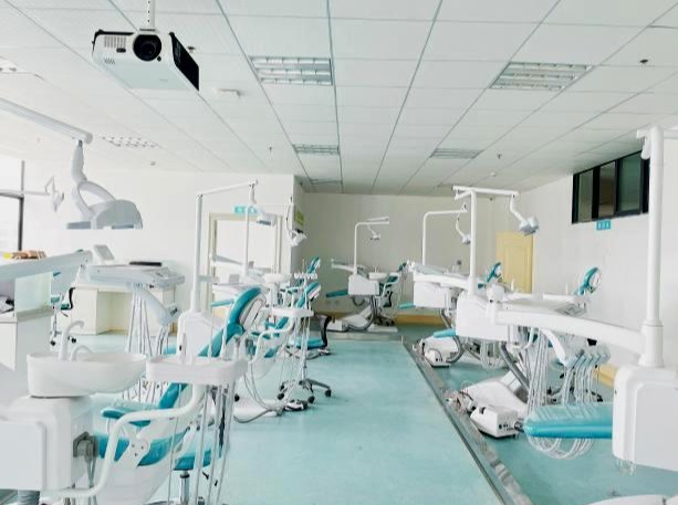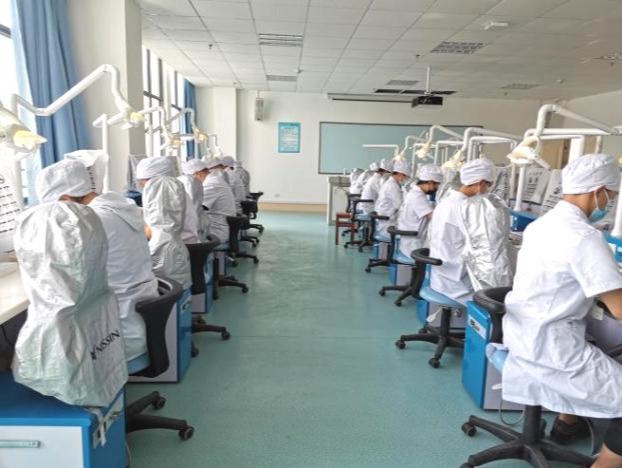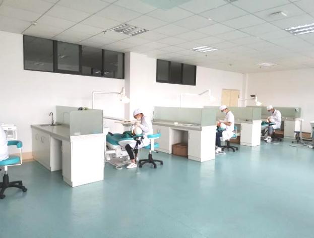 校内实训基地:口腔学院拥有完善的口腔实训条件,能够满足口腔护理实训教学。仿头模实训室2间、模拟诊室1间、无菌手术室1间、超声波洁牙机,真空高压消毒机,压膜机等。