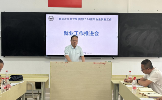 首先,由临床与公共卫生学院副院长王宝才对学院目前就业工作情况进行汇报,根据当前学院毕业去向落实率情况部署下阶段的就业工作目标和任务。