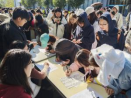 下午14:00活动在学校体育馆外围正式启幕。现场设置答题、制作、塑封三大专区:同学们携带提前拾选的秋叶到场后,先在答题区抽取党史、团史、校史及反法西斯战争主题题目,完成答题后依据所得名次,前往制作区挑选对应材料,亲手创作专属书签。