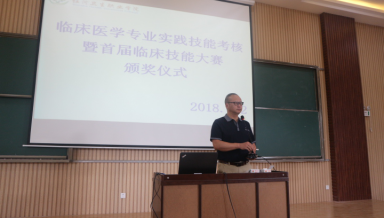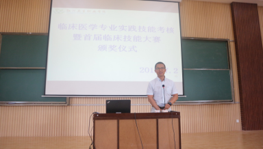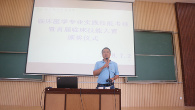 接下来是由林坚老师对本次实践技能考核做了总结:通过这次考核让学生提前了解助理医师资格考试,并评选出优秀的学生去参加全国大学生临床技能大赛;并且通过这次比赛也暴露了我们在教学与学习过程中的薄弱环节,如医患沟通技巧。随后是陈朝明主任对临床专业的学生们寄予厚望:祝愿同学们能成为合抱之木和参天大树。之后左强副院长做了重要讲话:希望同学们重视实践技能考核,若有机会去参加省赛和国赛,就有望免试专升本。