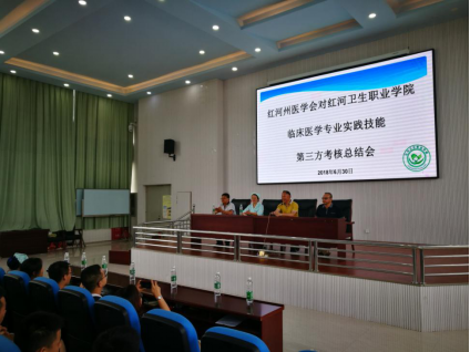 所有考核结束后,7月2日下午5:00举行了临床医学专业实践技能考核暨首届临床技能大赛颁奖仪式,参加本次会议的有我院副院长左强老师、临床医学专业的行业专业带头人、红河州第一人民医院ICU主任陈朝明及临床医学系主任林坚老师、临床医学专业老师及16级临床医学专业全体学生。
