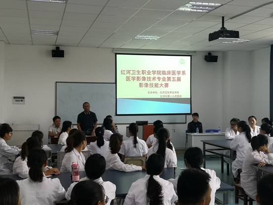 2019年6月11日上午,临床医学系医学影像技术专业在影像实训室举办第五届影像技能大赛。本次大赛邀请了红河州第一人民医院放射科普福顺主任、超声科苗蔚主任、放射科罗家滨副主任以及教学秘书梁远仲老师莅临赛场并担任评委,17级医学影像技术专业的20名同学参加了此次大赛。并运用了网络直播的模式向影像技术专业学生展示了选手们在比赛过程中的风采。