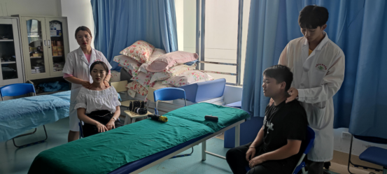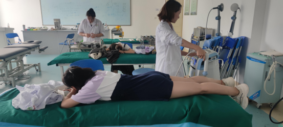 “康复体验”主要由康复教研室李艳秋老师策划,现场由李艳秋、赵一锦、赵富恒老师负责主持,参与体验活动的班级有18康复2班和19中医康复1班,其中中康班主要负责各位前来体验的老师和同学的手法治疗;康复班负责理疗设备的使用和介绍。