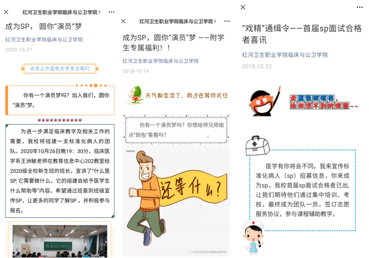 医学生“早临床、多临床、反复临床”是目前医学教育教学改革的方向。它既是医学生专业学习的动力引擎,也是培养医学生岗位胜任力的原点。结合我院三年制临床医学专业的客观实际,同学们进入临床实习前普遍对未来临床工作缺乏认知及动手实践能力,为改善这一现状,弥补和贴近部分临床教学实际,临床与公卫学院自2018年起开始了标准化病人( Standardized Patient,SP )团队的探索之路。现就三年来关于SP团队的成长历程作如下分享: