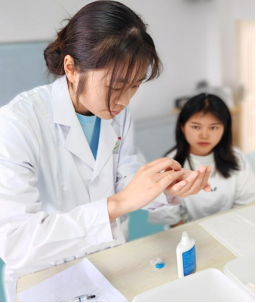 大赛设置理论考核与技能考核两大环节,全面检验参赛学生的专业能力,理论知识涵盖眼科学基础、验光技术、眼镜技术、角膜接触镜验配技术等内容,考验学生对专业知识的掌握深度与广度;实操环节则更注重技能应用,从检影验光、综合验光仪操作,到眼镜定配的打磨、装配、调校等流程,展现出选手们规范娴熟的技能水平。